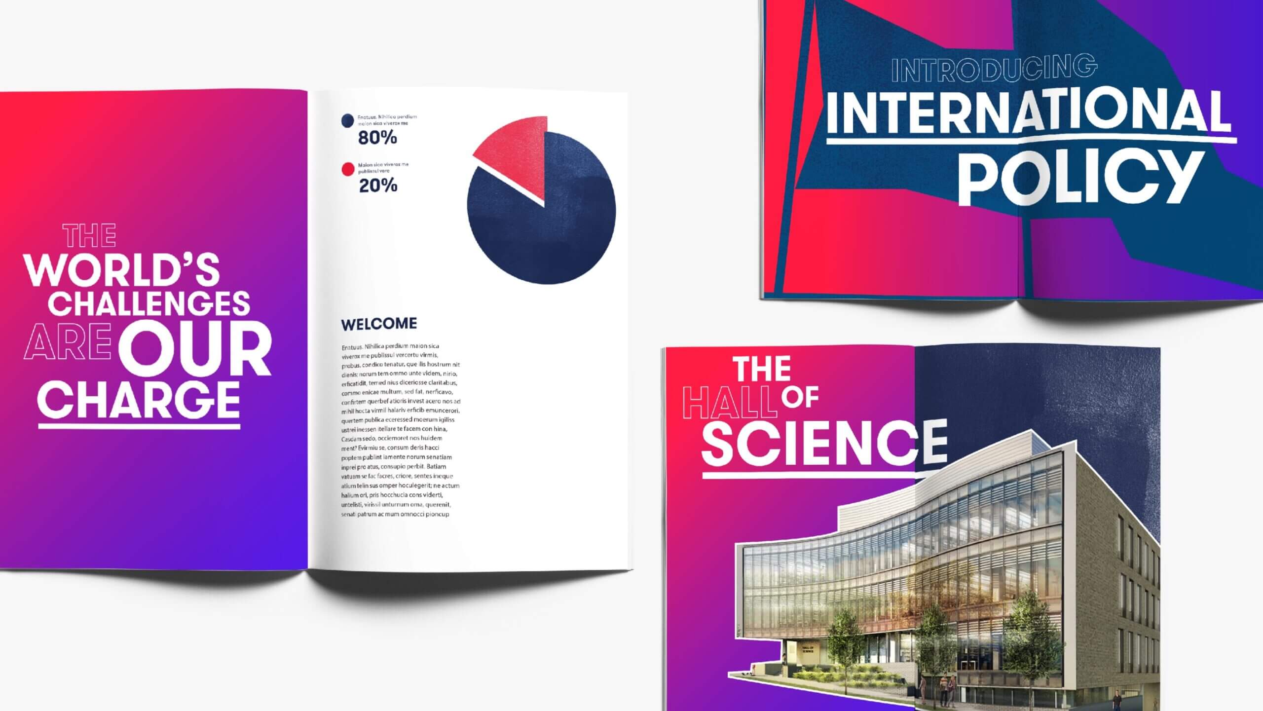 We delivered a modern and fresh visual approach, leveraging realistic and evocative photography with inspiration from hand-drawn, street protest signs. Our refreshed palette embraced AU’s time-honored colors and evolved into a blend that empowered them to stand out in a visual and political sea of red and blue in Washington.