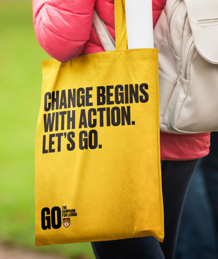 Go: The Campaign for Lehigh celebrates the university’s legacy of interdisciplinary education and action while appealing to the gritty, straight up, and spirited personality that unites their students and graduates. The campaign emphasizes what has always made Lehigh special—the ability to solve real-world problems by bringing together different disciplines and perspectives. But most importantly, the campaign makes the case for why today, more than ever before, the world needs Lehigh to help tackle the challenges that lie ahead.